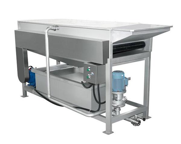 簡介—該設備適用于球形或長條圓形的果蔬清洗。果蔬原料在毛刷旋轉的推動下向前移動,洗凈度高。 ●選用較硬毛刷輥絲徑,可達到原果清洗去皮的目的; ●根據要求設計,選用柔軟的毛刷輥絲徑,可達到原果清洗上臘拋光的目的。