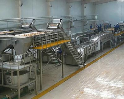 蔬菜汁生產線是在20世紀90年代引進國外技術的基礎上,專門用于冷凍果蔬配套使用的一條完整的自動化生產線。適用于各類蔬菜水果的清洗、燙燙、預冷、清洗及滲濾液處理。該設備是根據食品加工廠良好的操作規范要求設計的,采用全不銹鋼制造。機械作業取代了繁重的人工勞動,操作簡單,避免了重復污染,符合食品衛生出口標準,能耗低,為冷凍量和產量提供了有力的保證。一般適用于綠豆、芋、竹筍片、賀蘭豆、蘑菇、馬蹄片、蘑菇、豌豆、蠶豆、豆類、蘆筍、薯片和菠菜、花椰菜等多葉蔬菜和水果清、燙、預冷、滲濾液處理。